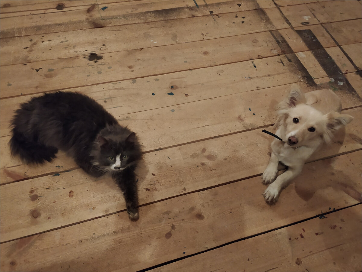 Спустя несколько месяцев дома Дуня наконец научилась оставаться одна. До того она, если мы уходили, выгрызала дверь, выламывал ручки на окнах, так что нам приходилось всюду брать Дуню с собой. За это время Дуня изучила новгородский кремль, обошла все строймагазины, научилась снимать деньги в банкомате, покупать продукты, вместе со мной занималась оздоровительной ходьбой по много километров.