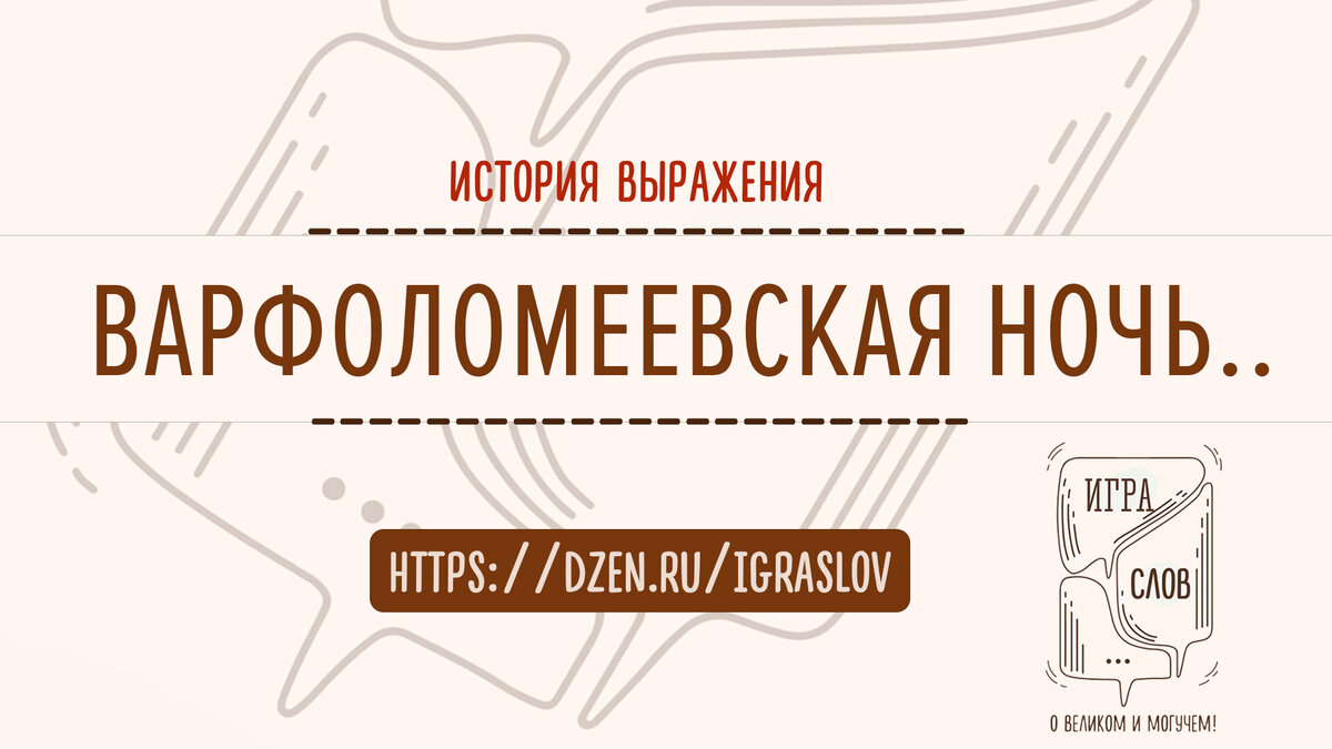 Добрый день, дорогие читатели! В нашем прекрасном языке огромное многообразие идеом (от греческого «идиос», которое означает «странный», «необыкновенный») - устойчивых выражений и фразеологических сращений слов, которые приобретают совершенно необыкновенный смысл. Многие мы знаем и употребляем в речи, но не всегда верно по смыслу и чаще всего не задумываемся об их происхождении. Надеемся вам также как и нам будет интересно разобраться и открыть для себя историю и смысл некоторых на канале о великом и могучем русском языке «ИГРА СЛОВ». ИСТОРИЯ ВЫРАЖЕНИЯ «ВАРФОЛОМЕЕВСКАЯ НОЧЬ» Это выражение связано уже не со сказкой и не библейскими сказаниями, а со страшной былью, которая действительно произошла в 16 веке во Франции. В ночь на праздник святого Варфоломея, с 23 на 24 августа 1572 года, в Париже по приказу церкви и короля изменническим образом было убито несколько тысяч «еретиков» гугенотов, сторонников преобразования католической церкви. Массовое убийство гугенотов-протестантов в Париже