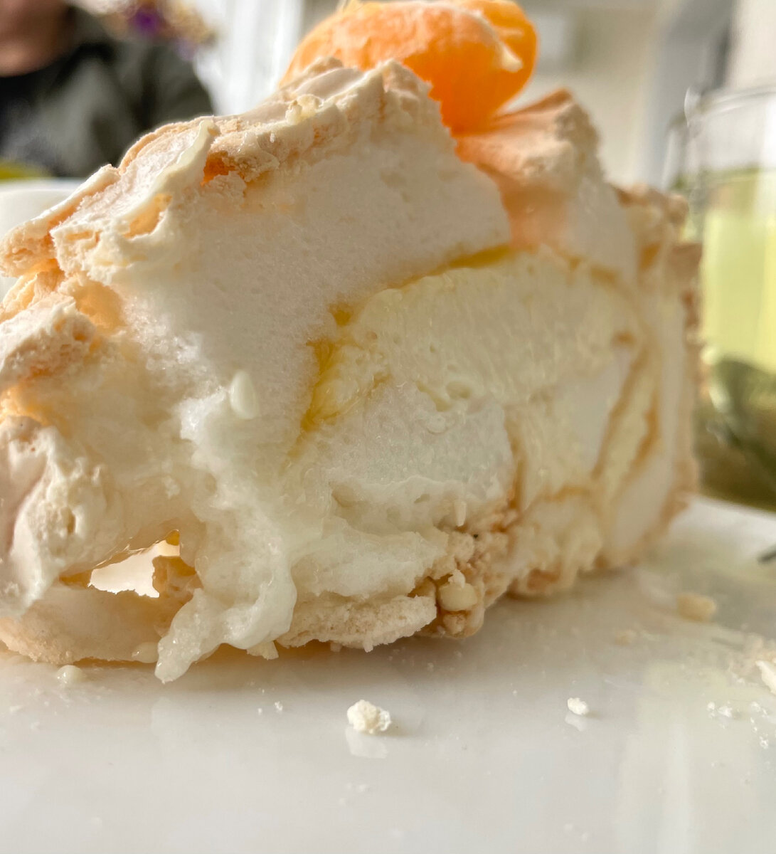 Безе, меренга и тому подобное - далеко не мои любимые десерты, чувствую привкус мела и яиц)) Не очень-то аппетитное начало) Я это к тому, что Меренговые рулеты изменили мое отношение к яичным десертам и мне очень давно хотелось его приготовить. Запишу здесь рецепт, чтобы еще не раз повторить. Ингредиенты: 200 гр - Яичные белки 340 гр - Сахар 40 гр - Крахмал кукурузный Лимонный курд Процесс: 1. Белки я покупала отдельно, поэтому отделять ничего не нужно было. 2. Белки я смешала с сахаром, миску поставила на водяную баню и мешала венчиком пока сахар не растворился (т.е. на ощупь крупинки сахара не должны ощущаться) 3. Далее взбила белки с сахаром до устойчивых пиков в планетарнике у меня ушло 10 мин, в конце всыпала крахмал 4. Распределила меренгу на противне высланном пергаментом 5. Выпекала в разогретой до 150 градусов духовке, до появления корочки (цвет из белого стал кремовым) 6. Когда противень немного остыл, я аккуратно перевернула корж на второй пергамент и первый сняла, внутри