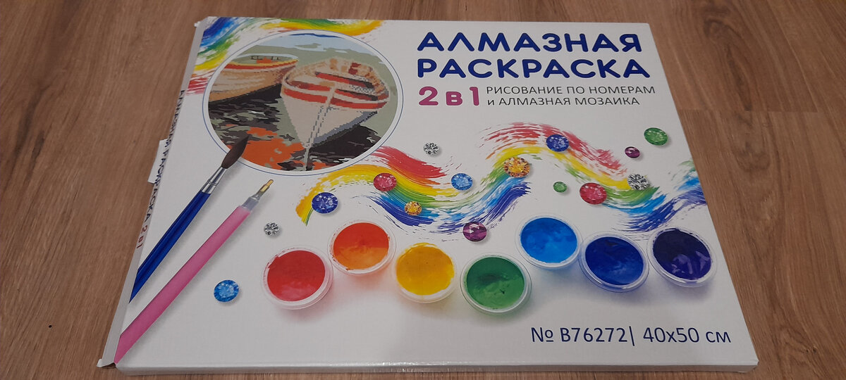 Всем доброго дня! Купила в магазине Светофор, алмазную раскраску, тут и мозаика и раскраска все вместе. Мои рассказы можно найти в оглавлении к каналу. На канале более 700 статей. Каждый читатель найдет что-то для себя. Есть не только рассказы и вязание. Ссылка на вязание тут. Цена очень привлекательная 260 рублей. В наборе есть все необходимое. Планировала привлечь детей к творчеству. Они мне во всю помогали с этой раскраской-мозаикой. Начинаем с мозаики. Так же и написано в инструкции, что сначала мозаика, а потом уже раскраска. Забегу вперед, стразов хватает с лихвой. Их номера, указаны на холсте сбоку. Пленочка держится на холсте очень хорошо. Стразы крепятся прекрасно! Одна лодочка готова. Осталось еще немного. Когда с мозаикой все, приступаем к раскрашиванию. Кисточка и краски есть в наборе. Начинаем рисовать с самых больших номеров. Осталось еще чуть-чуть. Картина готова! А как вам такое творчество? Мне сама идея совместить мозаику и раскраску понравилась. Я наслаждалась пр