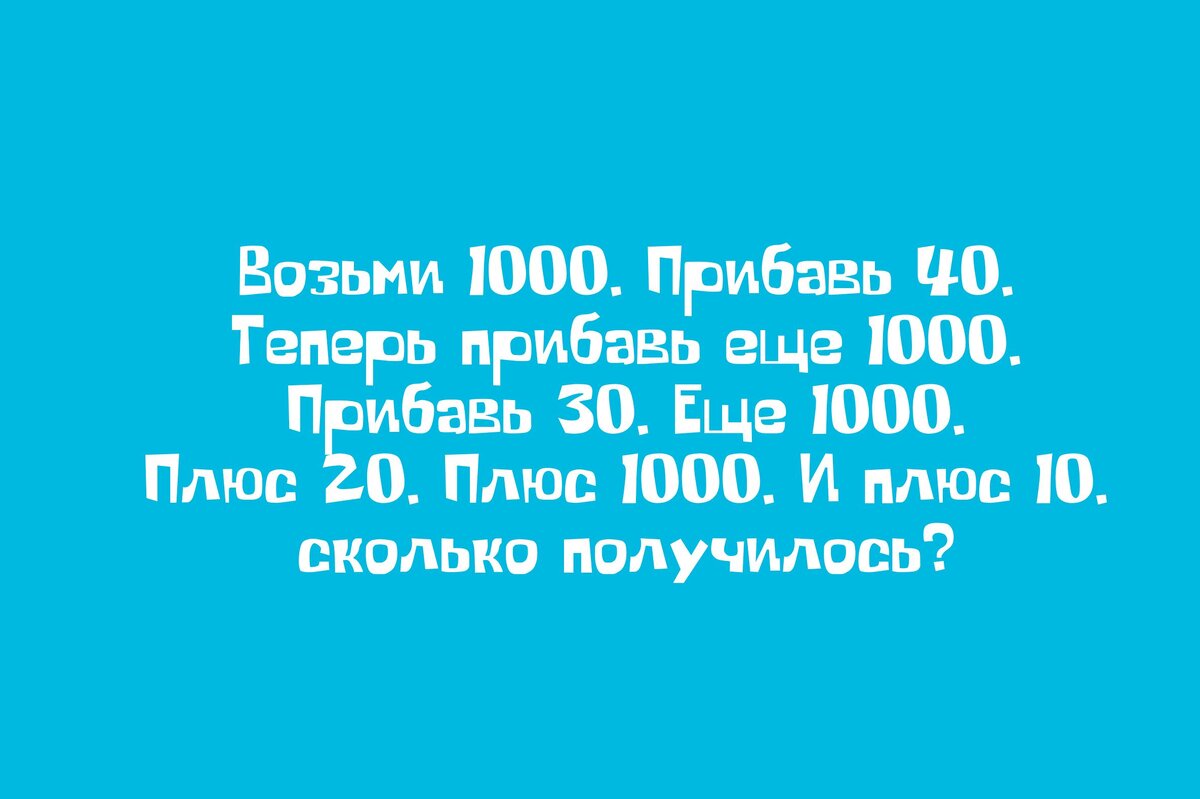 Эта задача кажется очень простой, однако почти все, кто пытается ее решать, оказываются сбитыми с толку. Чтобы справиться с головоломкой, надо уметь сосредотачиваться. Тебе не нужно знать высшую математику — достаточно просто уметь складывать и вычитать в уме. Отложи калькулятор, не пытайся выписывать цифры в столбик — таковы правила.