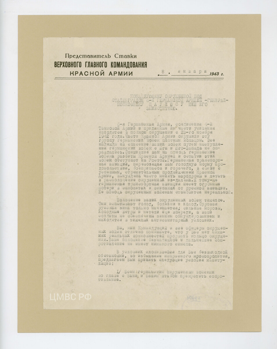 Ультиматум Паулюсу: смотрим редкий документ из фондов ЦМВС РФ