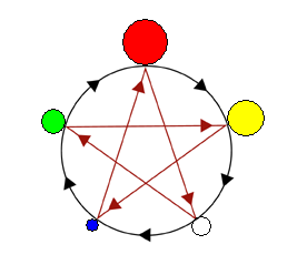 Поэтому для поддержания стабильности всей системы в целом каждый элемент, являясь членом этого объединения, подчиняется правилу, которое определяет, сколько энергии он должен отдать следующему элементу (по кругу порождения), если у него есть ее избыток, и сколько взять у предыдущего, если у него ее недостаток.