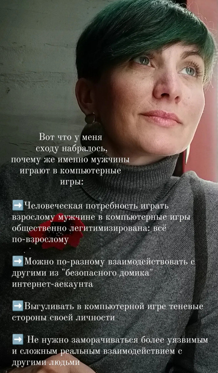 И правда - почему взрослые мужчины играют в компьютерные игры? Понятно, что в каждом конкретном случае будут свои ответы на этот вопрос. Но всё же что их всех может может привлекать? Порассуждаем поглубже? Компьютерные игры - это вам не детский сад, там всё по-взрослому: стратегии, тактики, рейтинги, команды, корпорации, донат. Над их созданием работают крутые специалисты, для ее установки необходимо выполнить определенные технические и материальные условия. И чтобы в нее играть, нужно соответствовать, то есть подтвердить/продемонстрировать определенную социальную статусность. К тому же компьютерные игры некоторым образом удовлетворяют некоторые социальные человеческие потребности, позволяя особо не выходить из достаточно "безопасного домика" аккаунта. То есть мне прям сейчас, чтобы повзаимодействовать с другими, не нужно всем своим существом вовлекаться в общение, предъявлять себя и при этом чувствовать себя востребованным и включенным в процесс. Я могу утолить свою потребность во вза