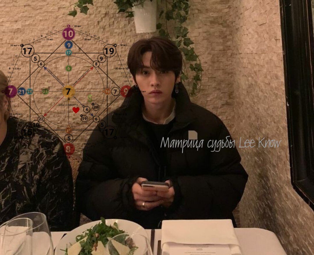 Мне так хотелось рассмотреть матрицы судьбы и остальных звезд K-POP, поэтому я продолжу эту рубрику) Сегодня на повестке дня Lee Know-участник одной из лучших групп k-pop— Stray Kids. С него мне и хотелось начать разбирать матрицы участников этой группы, поэтому я обязательно разберу всю группу Stray Kids. Не буду медлить, а пожалуй начну. Ну рассмотрим его визитку: 7-21-14 Как видим что он у нас любит движение, находится в своей комфортной компании, целеустремленный, имеет активную жизненную позицию, очень много энергии. Активный, предприимчивый, упорный, настойчивый, знает чего хочет и добивается этого. Также видим его творческую натуру, умеренную и всегда везде успевает. Он за масштабность, за мир во всем мире и продвигаться в глобальном плане. Зона комфорта-7 аркан Уже заметили что 7 аркан находится и на зоне комфорта так и в портрете. Поэтому силы описывать зону комфорта не буду: он за активность, за свою команду, за определенные действия к своим целям и мечтам и вдохновляет в