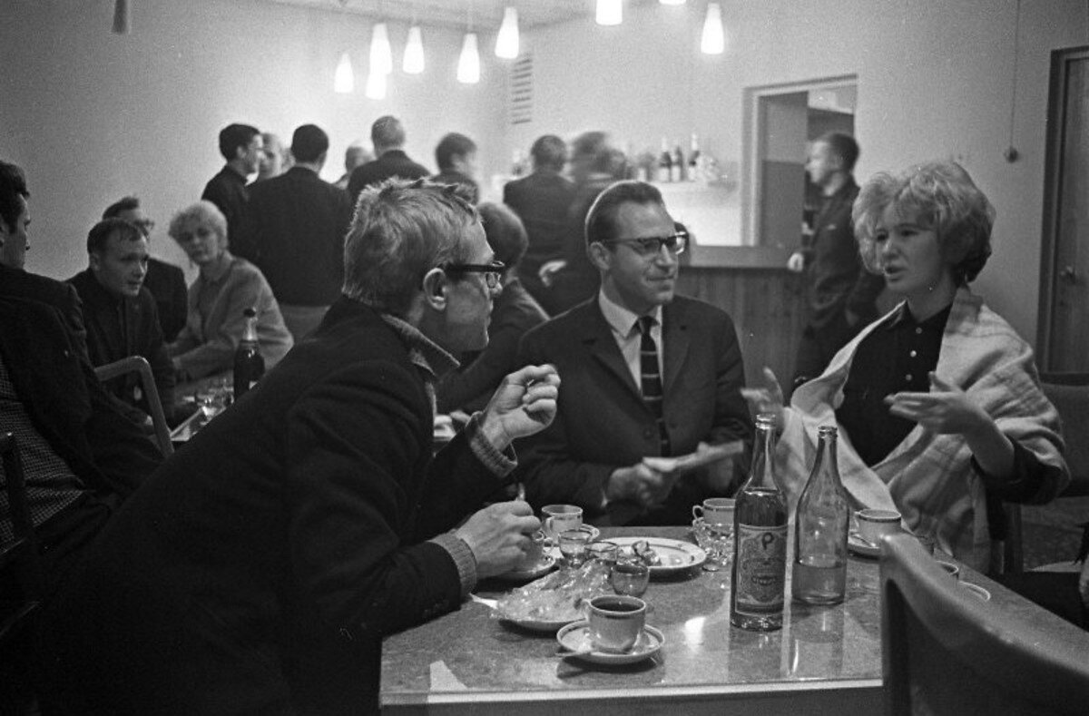 Перебираемся в ресторан ЦЗЛ и кого мы там видим? А видим мы здесь таких людей как Фазиль Искандер, Виктор Славкин и Марк Розовский. В некотором смысле звёзды своего времени, другой вопрос, что в 1969 году, когда сделан снимок, многие не знали, как выглядит тот же Фазиль Искандер.