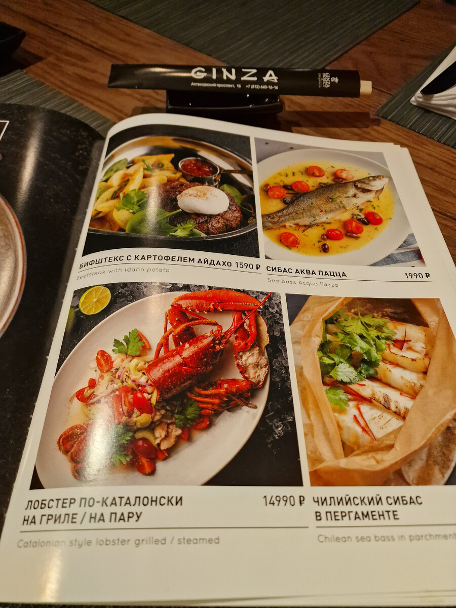 Хмурым зимним днем выпал случай посетить один из топовых ресторанов города который судя по отзывам из года в год удерживает высокую планку по качеству продуктов, кулинарного мастерства и для большинства населения неподъемных цен в меню. Хоть это была наша далеко не первая встреча, но столько воды утекло с последнего визита, было волнительно сумеет ли ресторан подтвердить свое реноме. Меню как больший глянцевый журнал, на изучение которого надо потратить минимум минут 20. Но зато здесь любой может найти себе по душе блюдо из разных уголков земного шара. Ролл с мягким крабом 2990 руб. Шел в сопровождении кисловатого соуса понзу, но он ему абсолютно не подходил и отлично сочетался с классическим соевым соусом. В самом же ролле был идеально сварен и заправлен рис, кусочки обжаренного теплого мягкопанцирного краба, омлет, огурец, авокадо и икра масага. И весь этот оркестр играл отличную симфонию никто не выбивался и не вылезал вперед, пять с плюсом. Креветки темпура 1390 руб. Прибыли в кра
