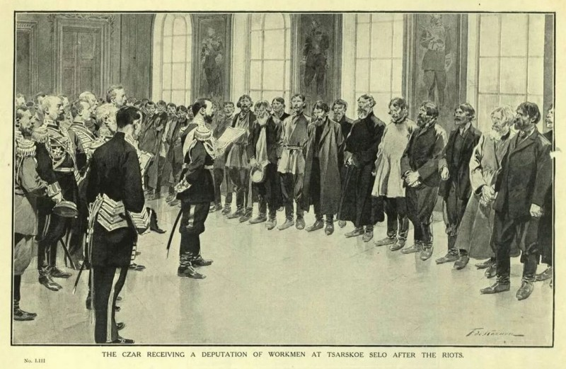 Трудна жизнь рабочего человека. Многое нужно в ней исправить, во многом облегчить и упорядочить условия этой жизни. Знаю это; думаю и пекусь о всех вас и устрою так, чтобы все справедливые ваши нужды были удовлетворены, при соблюдении той же справедливости и относительно хозяев ваших. Я позабочусь, чтобы и хозяева, и рабочие всегда имели законную возможность заявлять о своих нуждах и чтобы никто никогда не был обижен и обездолен. А теперь возвращайтесь на ваши заводы и фабрики и принимайтесь, благословясь, за дело. Помните, что Россия воюет с сильным внешним врагом. Все русские люди от мала до велика, кто не изменник своей родины, должны дружно приняться за общую работу, и тогда Бог дарует нам победу».