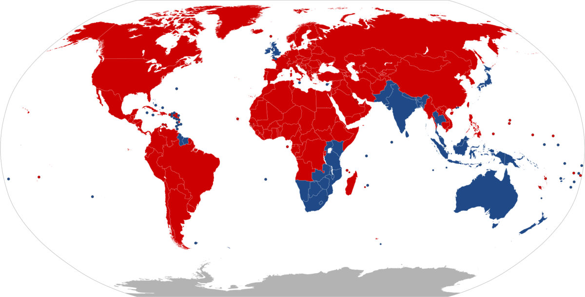 В материале разложим по полочкам все факты образования праворульного и леворульного движения. Сфера распространения леворульных машин и, соответственно, правостороннего движения, несоизмеримо шире, чем у машин с правым расположением важнейшего органа управления. В настоящее время примерно 66% жителей Земли ездит по правой стороне дороге, да и 72% всех дорог планеты правосторонние. А перед началом погружения в пучины правого руля короткий факт: первым массовым автомобилем с левосторонним расположением руля стал Ford T. А все эксклюзивы на тему будущих постов по ссылке (нажми на эту строчку) На картинке синим цветом выделены страны с правым рулем, красным с левым. Обратимся к истокам правого руля Известно, что древние римляне были "праворульщиками". Об этом свидетельствуют археологические находки, среди которых монета, с изображенными двумя всадниками, разъезжающимися по левой стороне дороги. Многие историки полагают, что левосторонняя традиция зародилась именно воинами, ездящими верхом