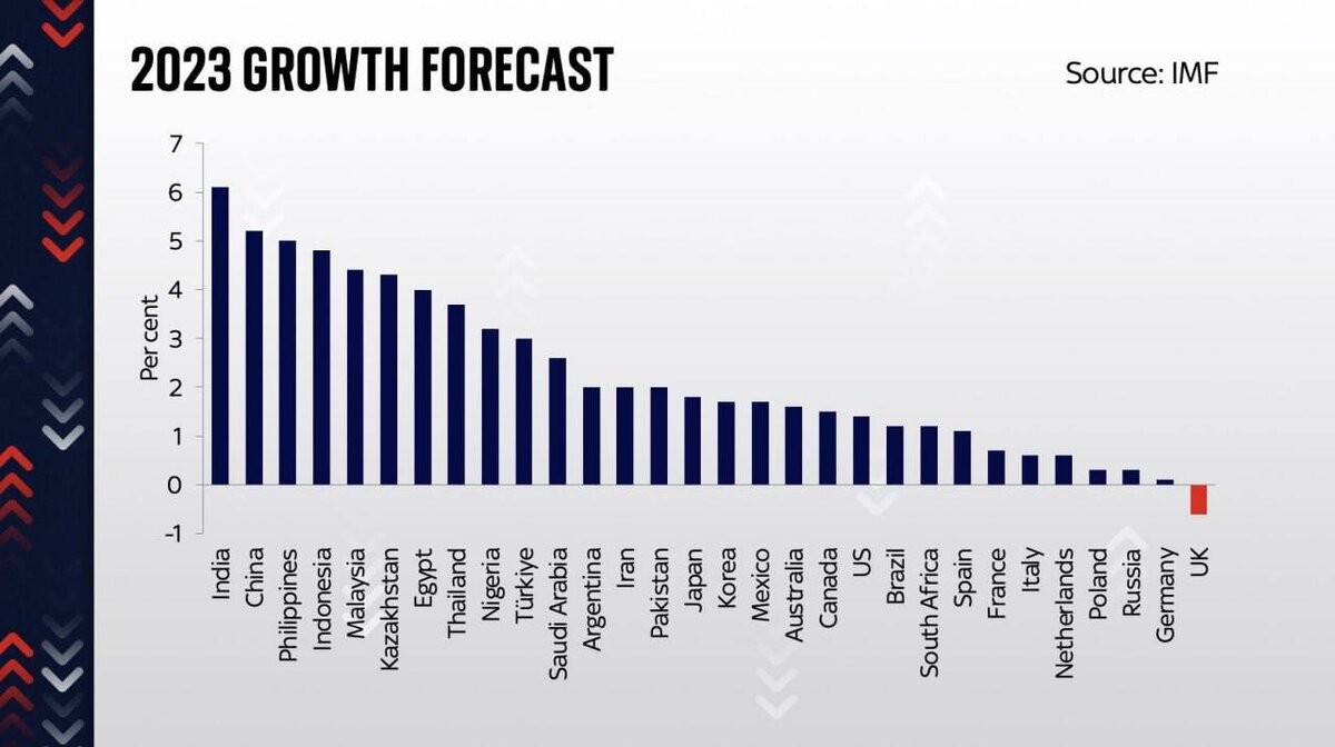 Не так давно Международный валютный фонд выкатил свой прогноз относительно состояния мировых экономик на 2023 год. Даже России, на которую обрушился шквал беспрецедентных ограничительных мер, МВФ щедро пророчит пусть и небольшой, но рост. Чуть хуже дела, по их мнению, будут обстоять у Германии. Однако передовиком среди аутсайдеров почетно стала Великобритания, которую единственную среди крупных экономик ждёт падение.
