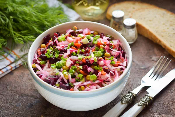 Винегрет – это один из салатов, который пришел к нам издавна, но, по сей день, он является популярным, его готовят практически во всех семьях. К тому же, сейчас этот салат набирает новую популярность, так как многие отдают предпочтение правильному питанию, а овощи – это просто идеальный вариант для хорошего рациона. Для приготовления Греческого салата Вам понадобится: Шаг 1. Для приготовления салата нам необходимо заранее подготовить овощи – морковь, картофель и свеклу вымыть и переложить в кастрюлю, залить чистой водой и поставить на огонь, довести до кипения. Варить овощи до готовности – картофель и морковь 25-30 минут, свеклу – 60-80 минут. Шаг 2. Готовые овощи остудить. Очистить морковь и картофель, овощи нарезать мелкими кубиками. Шаг 3. Переложить морковь и картофель в салатник. Следом очистить вареную свеклу и также измельчить ее кубиками. Добавить свеклу в салат. Квашеную капусту лучше нарезать, если она слишком длинная. Добавить квашеную капусту в салат. Шаг 4. Добавить в сала
