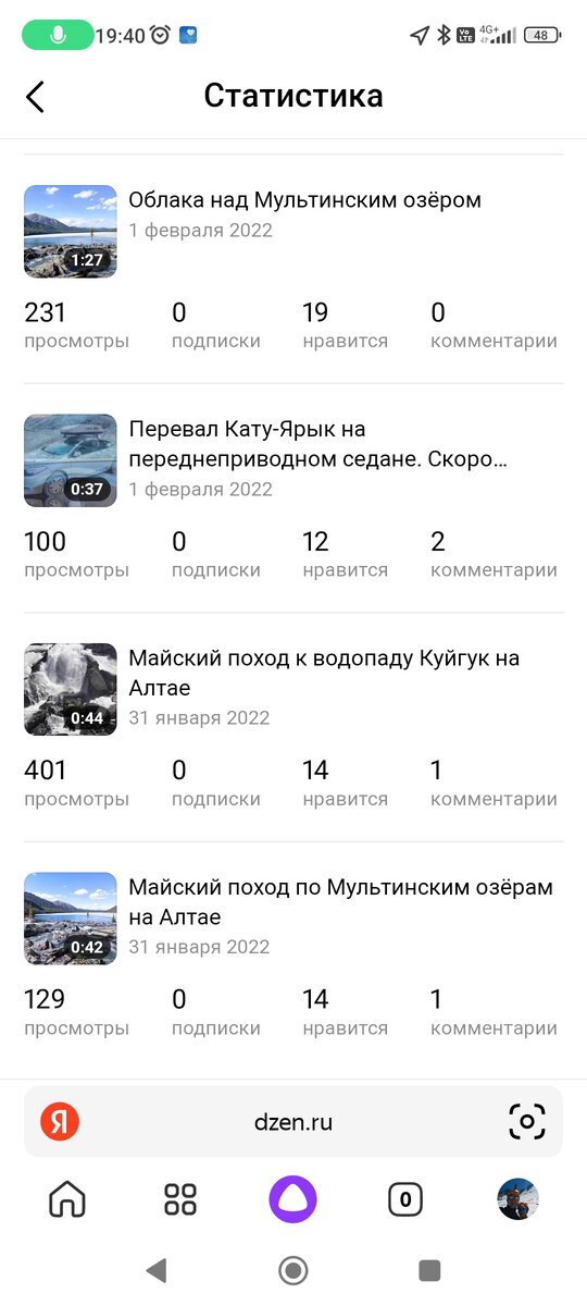 Здравствуйте, мои уважаемые подписчики и гости канала. Я тут немного закрутился в связи с грядущими переменами и длительной командировкой... И совсем забыл про день рождения канала! А ведь именно 31 января 2022 вышла первая публикация! Год пролетел незаметно... Но радует прогресс! Опробованы новые средства передвижения в походах - кони! Посещены новые места - Шавлинские озёра. Намотано опять три десятка тысяч километров на за рулём... Ну и создан и работает канал на Дзене. У меня появились новые знакомые, которые ценят моё кустарное творчество! Я сам подписался на многих авторов. И речь не о взаимных подписках, а именно об удовольствии от прочтения или просмотра видео! Надеюсь, что так будет и дальше! Ну а теперь об итогах: Заработано с конца августа почти две тысячи рублей (аж не знаю, куда деть свалившийся с неба капитал)))! Канал набрал 400 подписчиков! Спасибо, что вы со мной! Или как говорил один мой знакомый на своих концертах: "Спасибо, что пришли"! Опубликовано 312 материалов!