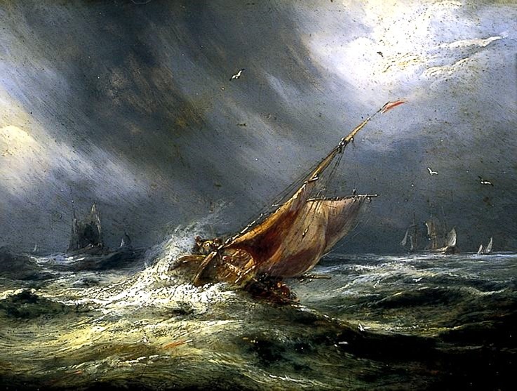 Гребцы твои завели тебя в большие воды; восточный ветер разбил тебя среди морей. Богатство твое и товары твои, все склады твои, корабельщики твои и кормчие твои, заделывавшие пробоины твои и распоряжавшиеся торговлею твоею, и все ратники твои, какие у тебя были, и все множество народа в тебе, в день падения твоего упадет в сердце морей (Иез.27:26-27)