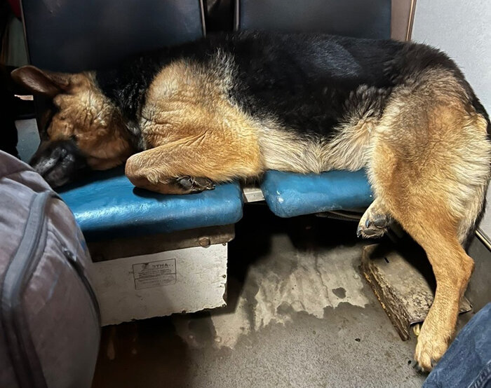 В Новосибирске грустная овчарка несколько дней одна ездит в трамвае