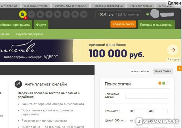 Большое количество сервисов Адвего дает возможность воспользоваться любым из них: магазином готовых статей, проверкой текста на уникальность и так далее.