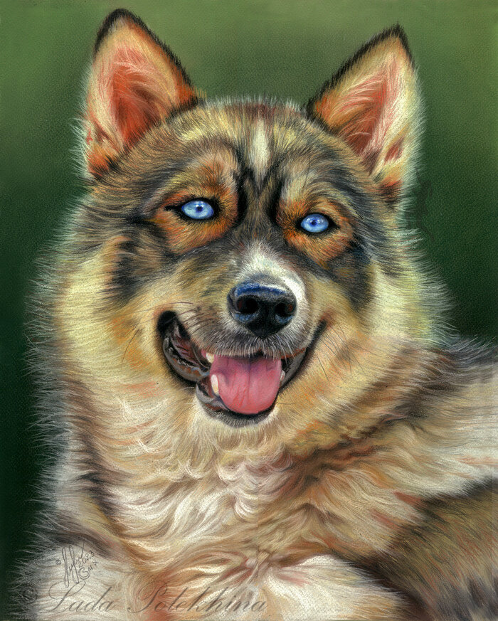 Этого пса мы встретили на Улагане. Как его зовут я не спросила, а сам он не представился, поэтому назвала рисунок "Улаганский пёс". К этому дню у нас за плечами было больше 1000 км алтайских дорог. Мы решили не ехать про жуткой пыльной гравийке до Кату-Ярык и устроить себе день отдыха на озёрах Улагана. Мы посмотрели на Чейбеккёль, доехали до самого живописного озера Улагана - Киделю, заглянули на Балыктукёль и остановились на обратном пути на Узёнкёле. Погода была тёплая, солнечная и мы решили отдохнуть и позагорать. Тут к нам пришмакодявило собако. С турбазы, она виднелась невдалеке. Просто пришел. Вроде обычный пёс, но с потрясающими глазами цвета алтайского неба. Я в общем-то собак не люблю. Я кошатница. Но тут перед напором животинки пришлось уступить принципам. Короче это наглое собако, очень дружелюбное, общительное и любвеобильное, только что не залезло нам на голову. Только пришло, упало и подставило пузо:Чешите меня". Пришлось почесать. Ни секунды оно не стояло спокойно, сфот
