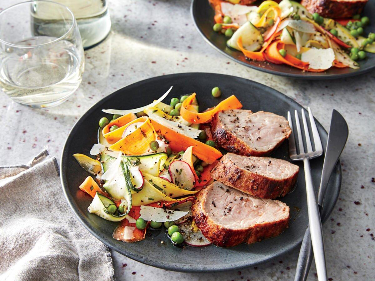 ✔️Любая белая рыба или куриная грудка, запечённая в фольге и овощной салат. Запекается порция 15-20 мин в зависимости от объема и мощности духовки. Этого времени вполне достаточно для нарезки и заправки овощного салата.