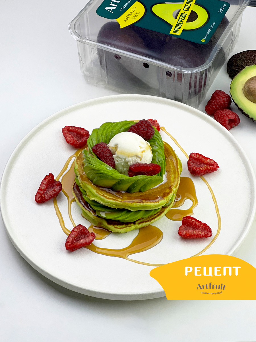 В преддверии весны хочется больше зеленого. Так что пусть и панкейки будут зеленые. И с авокадо, к тому же! Где брать безупречно спелое, вы уже знаете: в магазинах вашего города, от Artfruit. Ингредиенты: ✔️Молоко – 210 мл. ✔️Яйцо – 1 шт. ✔️Мука – 200 г. ✔️Разрыхлитель – 5 г. (1 ч. ложка) ✔️Масло растительное – 25 г. (2 ст. ложки) ✔️Сахар – 30 г. (2 ст. ложки) ✔️Соль – 1/2 ч. ложки ✔️Зеленый краситель ✔️Авокадо Artfruit – 1 шт. ✔️Малина – 1 уп. ✔️Шоколадная паста и мороженое – по вкусу ✔️Сироп или карамель – по вкусу Способ приготовления: 1. Разбиваем яйцо, добавляем сахар и соль. Перемешиваем миксером или венчиком до однородности. Добавляем молоко, перемешиваем. Наливаем растительное масло и снова хорошенько перемешиваем 2. В отдельной емкости просеиваем муку и разрыхлитель. Тщательно перемешиваем и высыпаем сухую смесь в емкость с тестом. Перемешиваем до однородности, добавляя несколько капель красителя для цвета 3. Сковороду (без масла!) ставим на средний огонь и хорошо разогревае