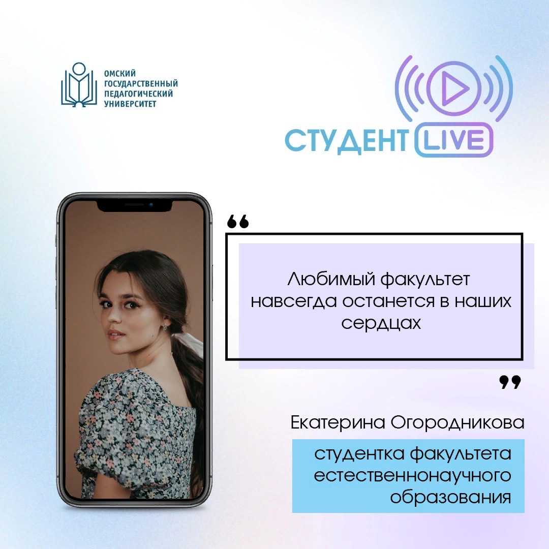 Университет без студентов как праздник без шариков: жизнь Омского педагогического остаётся яркой и насыщенной именно благодаря ним. Сегодня об учёбе в #ОмГПУ расскажет студентка факультета естественнонаучного образования Екатерина Огородникова. Почему ты выбрала ОмГПУ для поступления? Какими принципами руководствовалась? С детства любила играть в школу. Мне нравилось что-то объяснять и учить ребятишек помладше. В 8 классе вместе с мамой мы наметили вектор движения в сторону педагогического. Определиться с местом поступления помогли высокое качество образования, востребованность профессии и мои задатки. С первого дня здесь я уверена в том, что нахожусь на своём месте. Ни разу не пожалела о своём выборе. В университете я, можно сказать, практически живу. Ты активно участвуешь в студенческой жизни. Что мотивирует тебя на это и что тебе больше всего нравится во внеучебных активностях ОмГПУ? Моя любовь к творчеству не позволяет постоянно сидеть за книжками и заниматься только учёбой. Мне н