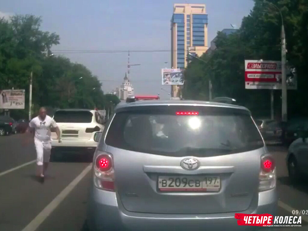 Вылетает этот перец, значит, из своего староватого Кайена и мчится назад к Тойоте. Там ему уже больше 10 метров бежать.