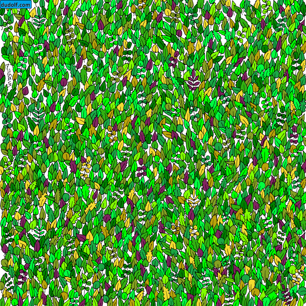 В куче листьев спряталась всего-то одна лягуха. И её необходимо найти.