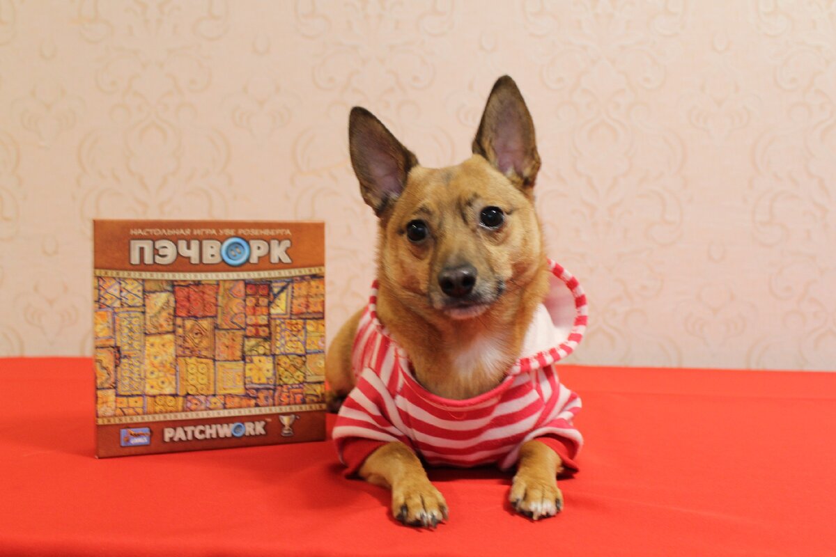 Кстати, моя мама - Джек Рассел отлично вышивала, но мне этот дар не передался. Чтобы начать игру, возьмите себе планшет (ваше будущее одеяло), 1 фишку игрока и 5 синих пуговиц.