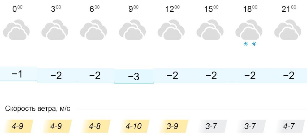 Столбики термометров в течение суток будут показывать отметки от -1℃ до -3℃. Большую часть времени ожидается до -2℃.