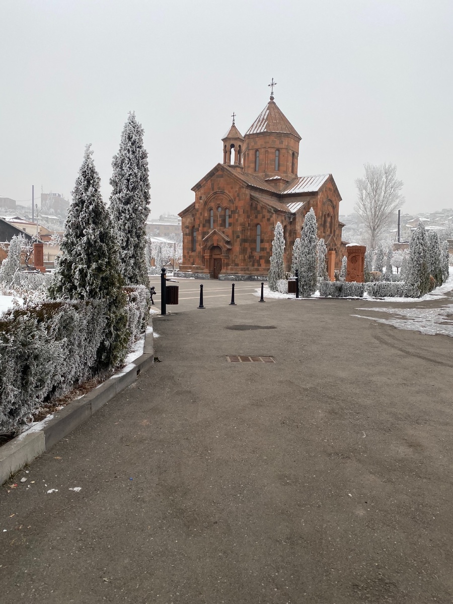 Обошла церковь вокруг, посмотрела на голые и заснеженные деревья, на новые хачкары, которых до войны тут не было, подышала этим холодным, но уютным воздухом. И зашла внутрь.