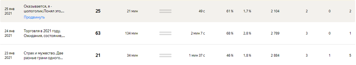 И да, даже постоянные публикации статей не гарантируют постоянный рост аудитории. К примеру, все последние публикации имеют показатели: