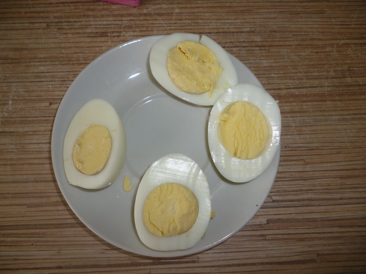 Яйца очищаем. Разрезаем на две половинки.