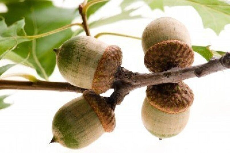 Желуди, очищенные от кожуры, разрезать на 4-5 частей и залить водой. Вымачивать двое суток, меняя воду 3 раза в сутки. Затем желуди залить двойным по объему количеством чистой воды и поставить на огонь. При первых признаках закипания воду слить, желуди пропустить через мясорубку. Полученную массу рассыпать тонким слоем для просушки на воздухе, а потом в духовке. Высушенную массу смолоть на кофейной мельнице. При установке мельницы на крупный помол получается крупа для каши, а при более мелкой установке — мука для лепешек. Хлеб из жёлудей. Желуди служили человеку пищей еще до того, как покровительница земледелия Церера обучила людей хлебопашеству – так полагали древние римляне. Ученые-археологи не без основания полагают, что первым «хлебным растением» надо считать не злаки – рожь или пшеницу, а дуб. Например, при раскопке древних трипольских поселений на территории современной Украины были найдены высушенные и растертые в муку желуди. Из этой муки наши предки пекли хлеб более 5000 лет назад. Желуди очень питательны, но дубильные вещества придают им горьковатый вкус. Если удалить эти вещества, то из желудей можно приготовить некоторые оригинальные блюда. Дубильные вещества легко удаляются вымачиванием. Желающие могут попробовать испечь желудевый «хлеб». Рецепт позаимствован из книги известного популяризатора ботаники Н.М. Верзилина. Собирать желуди лучше после первых заморозков. Их очищают от кожуры, разрезают на четыре части, заливают водой и вымачивают двое суток, ежедневно меняя воду не менее трех раз. После этого желуди нагревают в воде до кипения (2 части воды на 1 часть желудей) и пропускают через мясорубку. Полученную массу высушивают – сначала тонким слоем на воздухе, затем в печке или духовке до тех пор, пока она не станет похрустывать, как сухари. Высушенные желуди толкут или размалывают любым способом. При крупном помоле получается крупа, из которой можно варить кашу, из муки – печь лепешки. Правда, желудевое тесто не обладает клейкостью и вязкостью, поэтому лепешки при переворачивании ломаются. Чтобы избежать этого, советуют сковороду с лепешкой накрывать второй такой же сковородой и переворачивать их обе – лепешка просто падает с одной сковороды на другую, на которой и дожаривается. Если лепешки смазать вареньем, повидлом или кремом и выложить стопкой друг на друга, получится вкусный торт. Вымоченные и слегка поджаренные кусочки желудей вполне могут заменить ореховую посыпку для торта. Лекарственное использование. C лечебной целью используют кору, листья и плоды дуба. Из коры дуба выделены танины, растворы которых используют при воспалительных процессах в полости рта, носа, гортани, для лечения язв и ожогов. Кору применяют как сильное вяжущее и укрепляющее кровеносные сосуды, а также как противоглистное средство. Кора дуба эффективна в качестве противовоспалительного средства при заболеваниях полости рта (гингивиты, стоматиты, амфодонтоз), зева, гортани, глотки. Кроме того, её применяют для лечения ожогов, кожных заболеваний, ран, обморожений. Кора дуба используется при отравлении грибами и при лечении поносов. ! Для полоскания рта и компрессов готовят отвар из расчёта 10-20 г коры дуба на 200 мл воды. Кипятят 15-20 минут, процеживают. ! Настой коры дуба назначают при воспалениях желудочно-кишечного тракта, поносах, диз