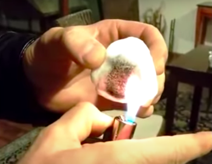 На одном видео жительница Волгограда собирает снег в горсть, делает снежок и пытается его поджечь зажигалкой. Снег не превращается в воду, как это должно быть. Вместо этого он чернеет и немного сминается в том месте, где поднесли зажигалку - плавится. Из чего девушка делает вывод, что снег сделан из пластика. Видимо, из-за плохой экологии в воде, падающей с неба, много продуктов нефтепереработки.