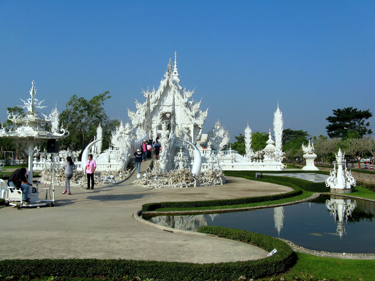 Да, это новодел, и это храмовый авангардизм, за что местные жители иногда вообще не признают его настоящим храмом, но это поистине что-то невероятное и по красоте и по ощущениям. Храм Wat Rong Khun (за свой цвет получил название Белый храм) начали возводить в 1997 году по проекту и на деньги тайского художника Чалермчая Коситпипата (Chalermchai Kositpipat). Процесс еще не закончен, продолжается строительство и роспись внутренних интерьеров.