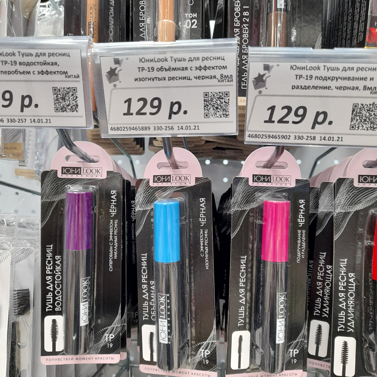 Несколько вариантов туши для ресниц: 1.влагостойкая с эффектом накладных ресниц, супер-объем; 2. объемная с эффектом изогнутых ресниц; 3. подкручивание и разделение; 4. удлиняющая все по 129 руб.