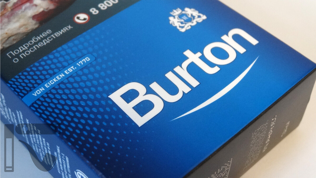 Отдельно стоит сказать и о ценах на эти сигареты. Так на официальном рынке России установлена максимальная цена в 110 рублей и это не дорого, учитывая что стоимость других сигарет этого же производителя стремительно подбирается к отметке в 200 руб. Версии с "чёрного" рынка стоили в районе 75-80 рублей, хотя сейчас это не показатель - цены задирают и оптовики. А вот на рынке Германии пачка Burton обойдётся в 6 евро и с нашим курсом - это кажется просто дикой стоимостью, что для Европы не так уж и дорого.