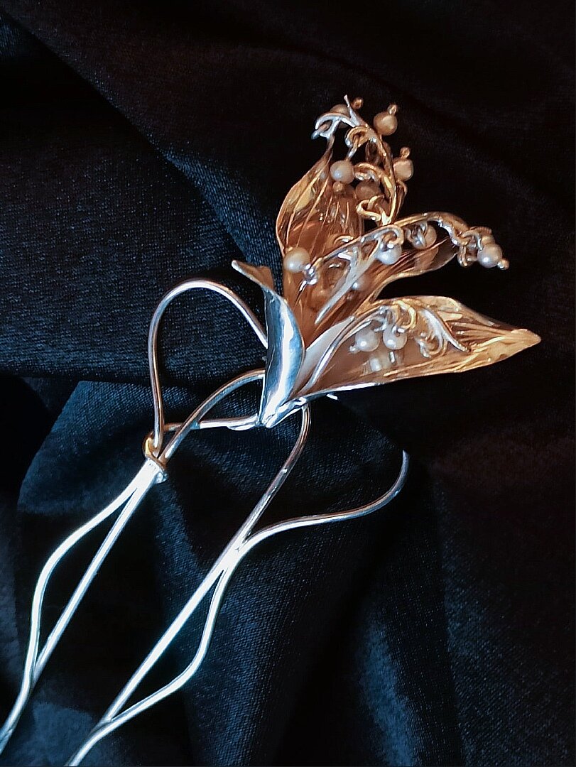 Шпилька для волос с речным жемчугом.