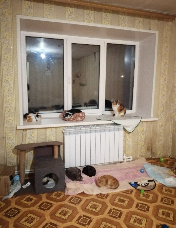 "Здравствуйте, посоветовали обратиться к вам. Ситуация у нас такая, большое количество бездомных кошек взрослых и маленьких, диких и ручных выживали в кочегарке (здание для отопления местного клуба и дома престарелых), я их переловила (не всех ещё) в свою квартиру для стерилизации, лечения и пристройства, многих простерилила, некоторых удалось пристроить.