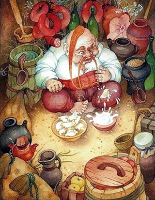 Наслаждайтесь э им вкусным блюдом, а если совсем не хочется двигаться, то следуйте примеру пузатого Пацюка, и пусть вареники сами летят к вам в рот.
