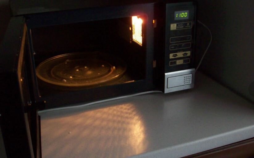 Потребуется стакан води и один лимон. Лимон разрежьте пополам, выжмите в стакан и туда же бросьте остатки лимона. Поставьте в микроволновку и включите на 3 минуты. После выключения дайте ей постоять 5-6 минут, после чего без усилий удалите все загрязнения обычной губкой для мытья посуды.