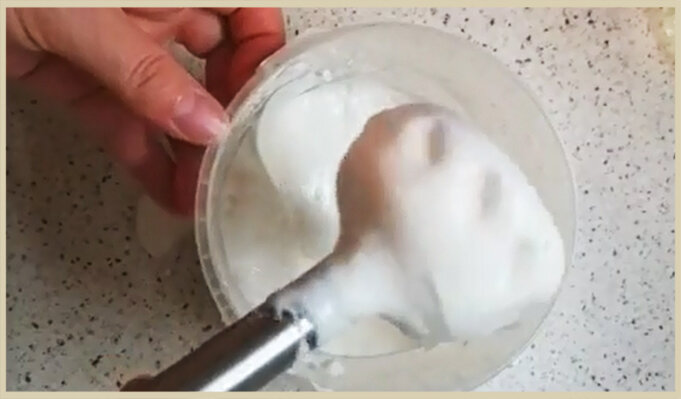 Взбиваем до загустения. После чего добавляем чайную ложку лимонного сока и вновь все хорошенько перемешиваем блендером.
