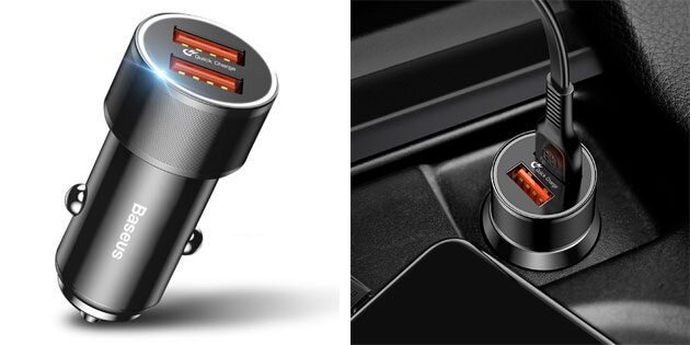 Мощный адаптер с поддержкой Quick Charge 3.0 и двумя USB-портами для зарядки гаджетов.