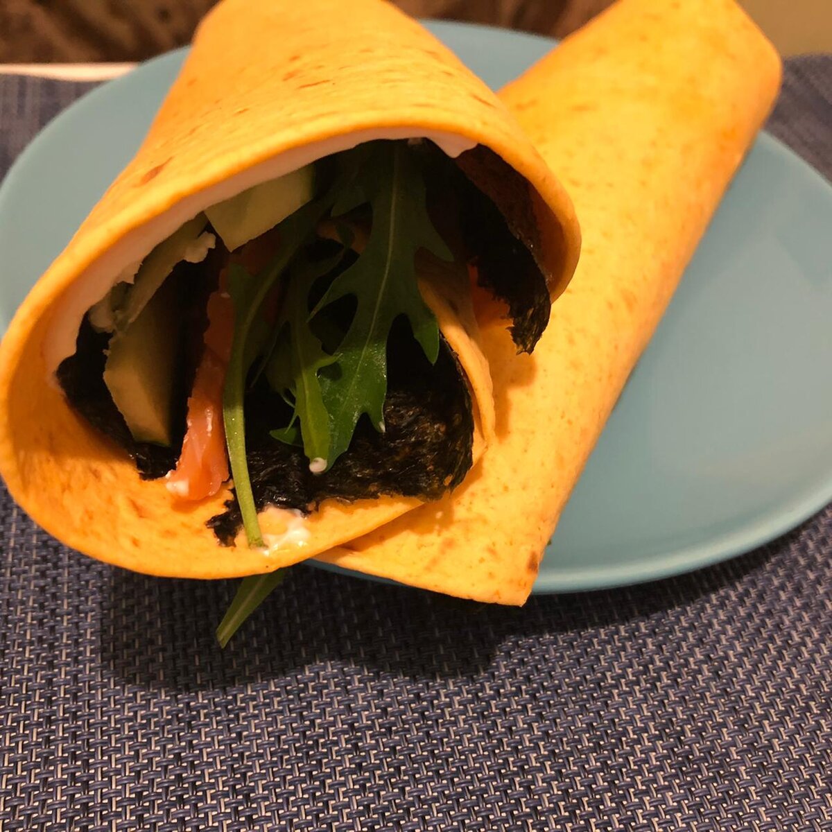 На мексиканскую лепешку намазываем соус. Очень вкусно получается, если использовать соус тар-тар, но вполне можно заменить тем, что есть сейчас в холодильнике.