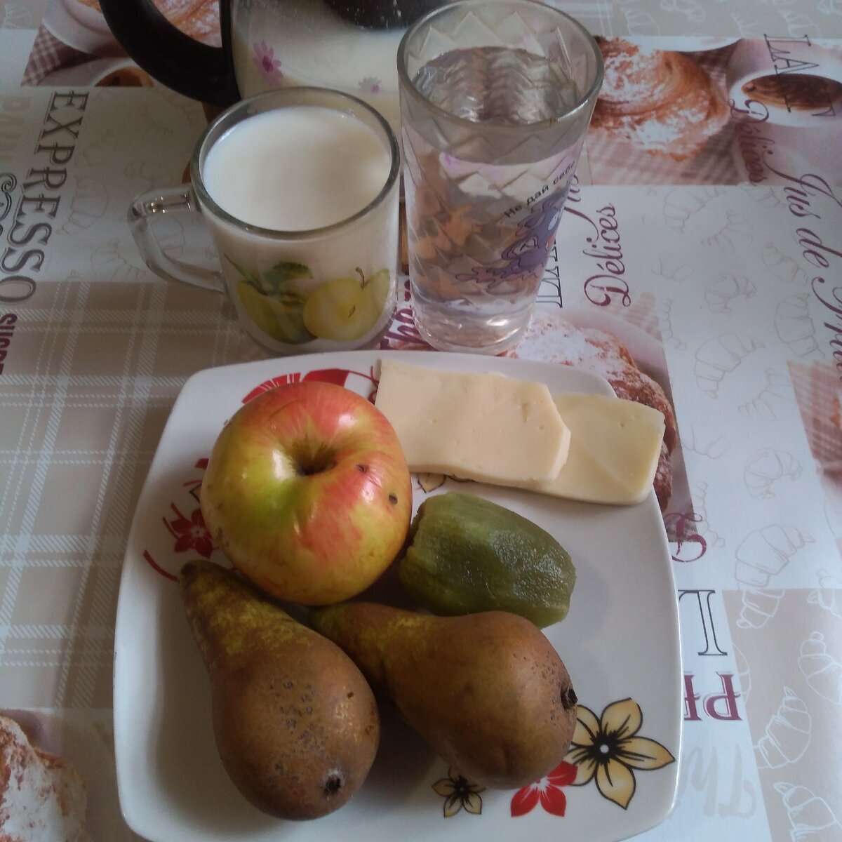 Дополнила молокочай фруктами и парой кусочкой сыра Сулугуни.