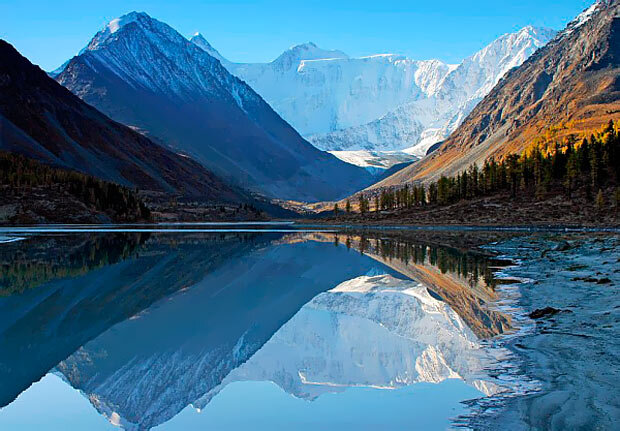 Самый высокий пик Сибири получил своё название из-за нетающей шапки снега на вершине. Местные же называют её Уч-Сюре — «жилище трёх богов». Именно эту гору можно увидеть на гербе Республики Алтай. Известный русский путешественник и эзотерик Николай Рерих изобразил её южный склон на одной из своих картин. Он был уверен в том, что здесь скрыт вход в Шамбалу. «Владычица Алтая» — так художник называл свою могучую заснеженную музу.