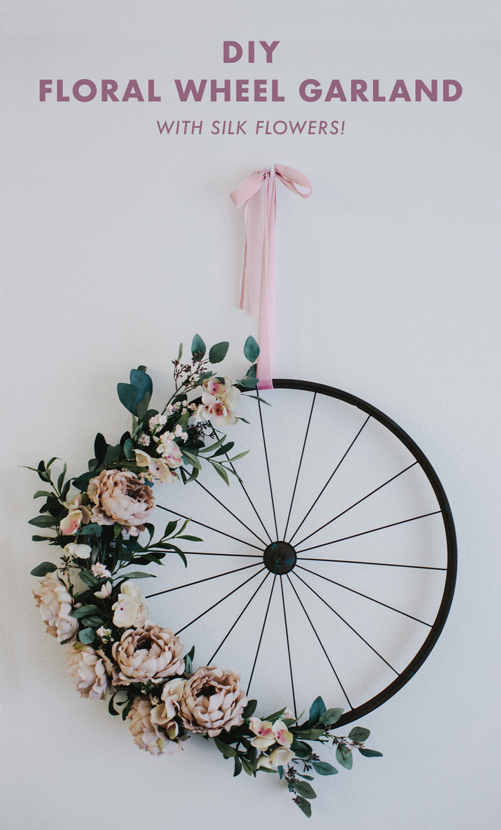 Сегодня мы делимся этой милой велосипедной колесной гирляндой, которую вы можете использовать для свадебного декора вокруг вашего места проведения, а также принести домой, чтобы украсить! И бонус – вы можете поменять основные цветы на что-то новое для каждого сезона! Оранжевые листья на осень, пуансеттии на Рождество?! Мы здесь для этого!
