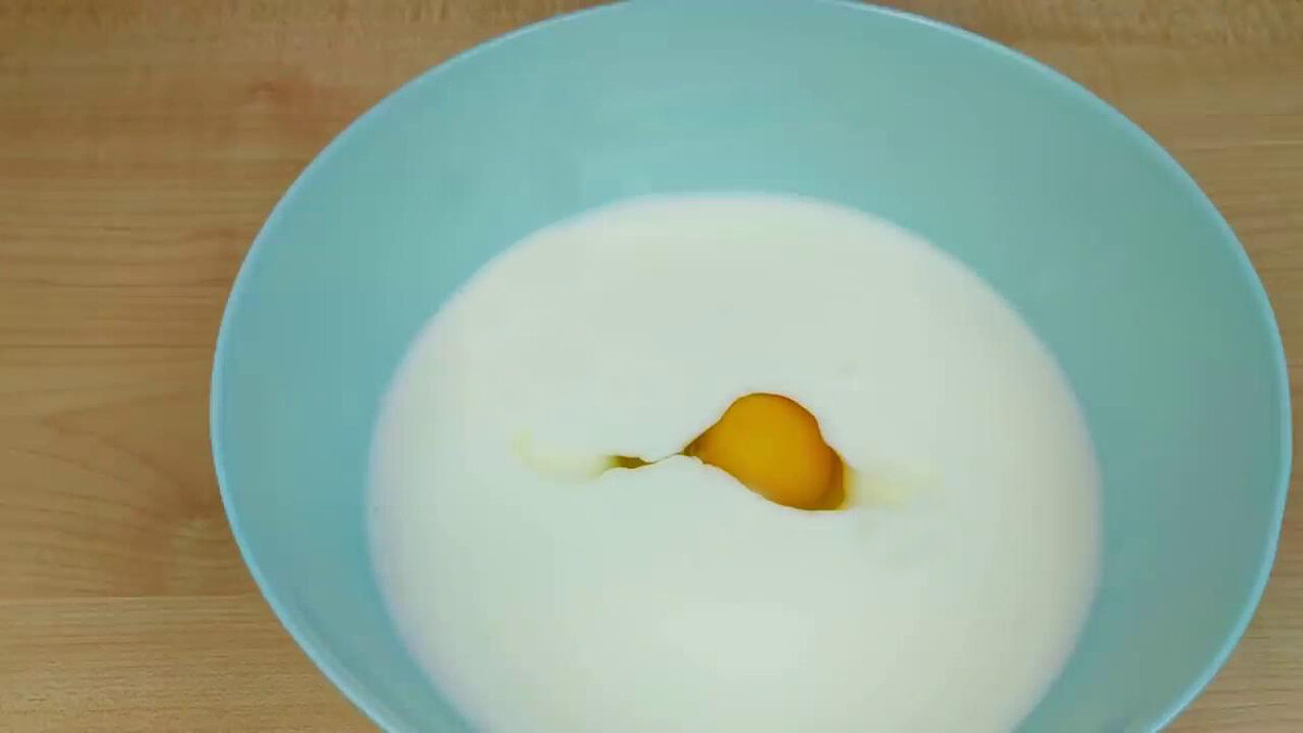 1. Берём глубокую миску и вливаем в неё 500мл. кефира, добавляем одно яйцо.