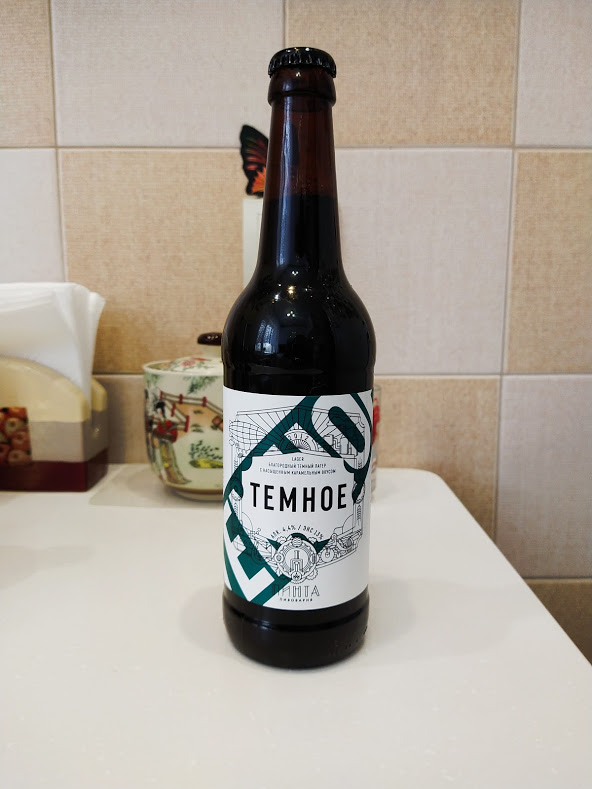 Заехал в субботу в Ленту за креветками. Креветок не купил, зато взял несколько бутылочек пива на обзор. И начал с тёмного, которое так и называется: "Тёмное"))).