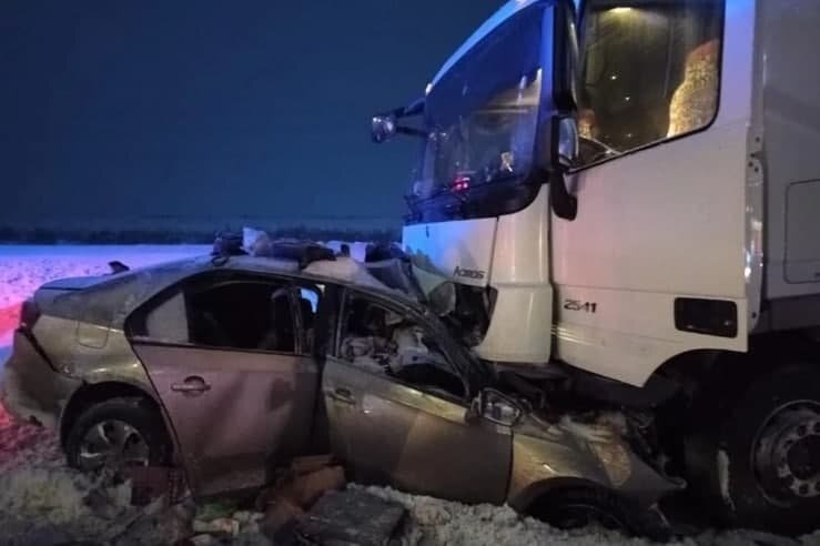 Грузовик ехавший по встречной полосе врезался в иномарку, держащую путь в Челябинск. В салоне легкового автомобиля находилось два ребенка. От полученных на месте травм, все пассажиры автомобиля скончались.