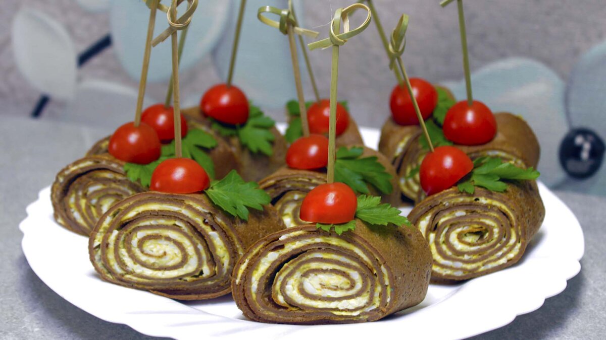 Сегодня я хочу поделиться с вами интересным вариантом вкусной, яркой закуски. Предлагаю приготовить рулетики из печени с нежной, ароматной начинкой. Эти рулетики можно подать на праздничный стол в качестве холодной закуски или предложить домашним для разнообразия на обед или ужин. Попробуйте, рекомендую! Необходимые ингредиенты и видеорецепт вы можете увидеть в конце статьи ⤵️⤵️⤵️ Приготовление: в чашу отправляю куриную печень, муку, яйца, молоко и соль с перцем. Погружным блендером хорошо все измельчаю в однородную массу. Добавляю растительное масло, перемешиваю и выпекаю печеночные блины. Для начинки натираю на тёрке пару варёных яиц, плавленый сырок и чеснок. Добавляю майонез, перемешиваю и начинка готова. Начинку выкладываю и распределяю на трёх блинах. Сворачиваю их в рулет и затем нарезаю на порционные кусочки. Украшаю помидорами черри с зеленью, скрепив шпажкой и можно подавать на стол! ❗Список ингредиентов указан в первом комментарии или под последним фото, листайте фотогале