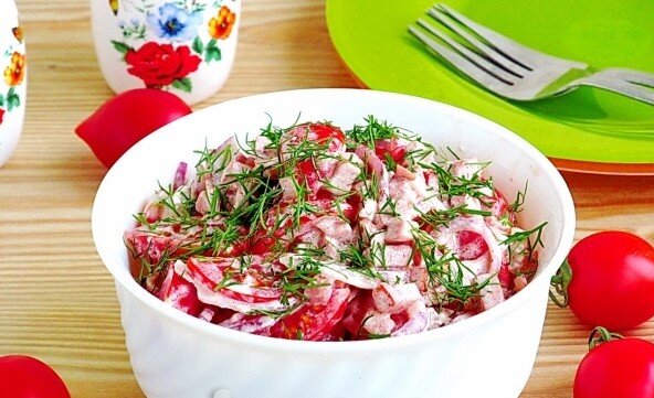 Меня очень заинтересовал этот лёгкий рецепт. Люблю я такие незамысловатые, но очень вкусные блюда. Здорово, что продуктов нужно немного и они почти всегда есть в холодильнике. Каких только салатов я не готовила в своей жизни! На поверку оказалось, что очень часто блюда из небольшого набора продуктов оказываются намного вкуснее "навороченных". Вот так же и с этим салатом... Неожиданно